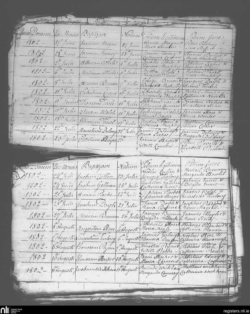 Taghmon; County of Wexford; Diocese of Ferns. Baptisms, June 1802 to Aug. 1802