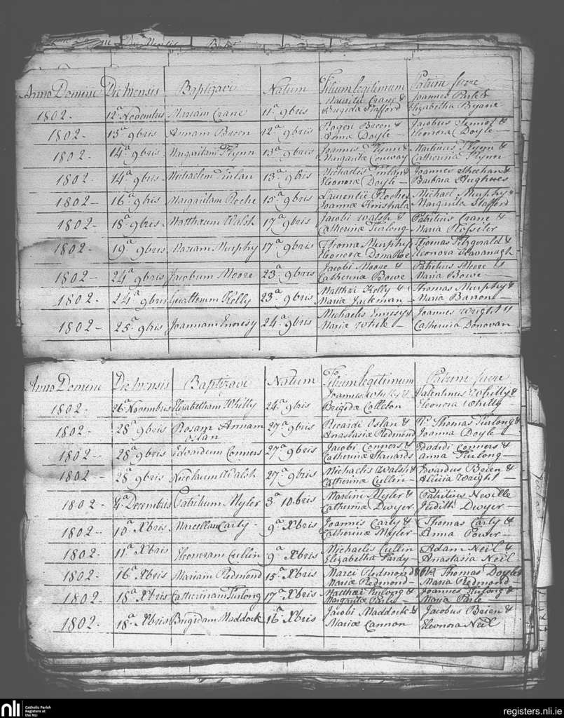 Taghmon; County of Wexford; Diocese of Ferns. Baptisms, Nov. 1802 to Dec. 1802