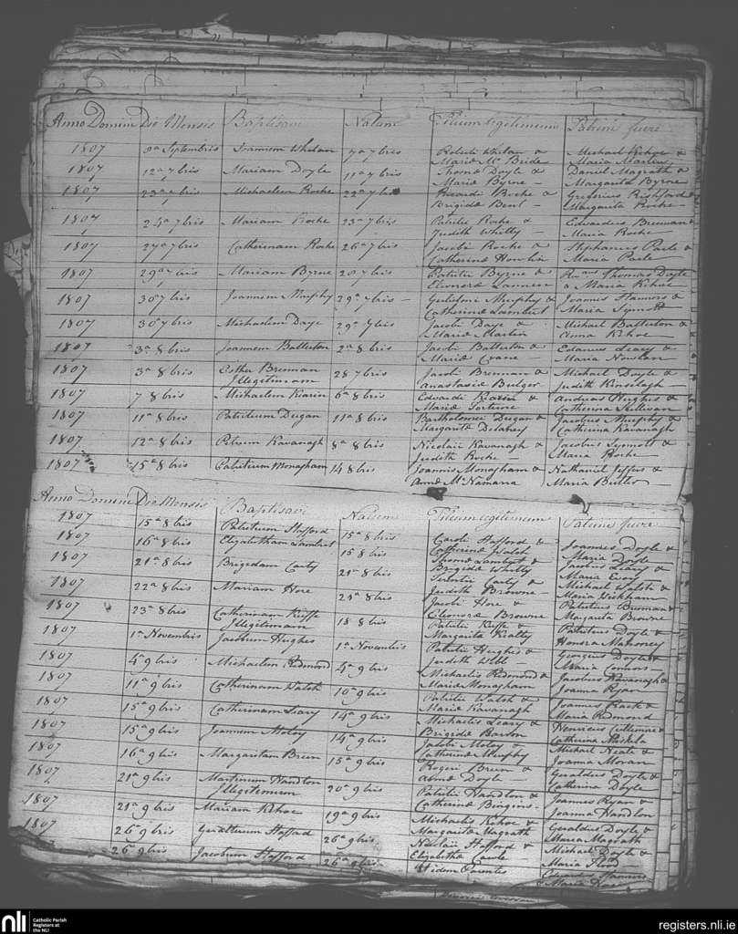 Taghmon; County of Wexford; Diocese of Ferns. Baptisms, Sep. 1807 to Nov. 1807