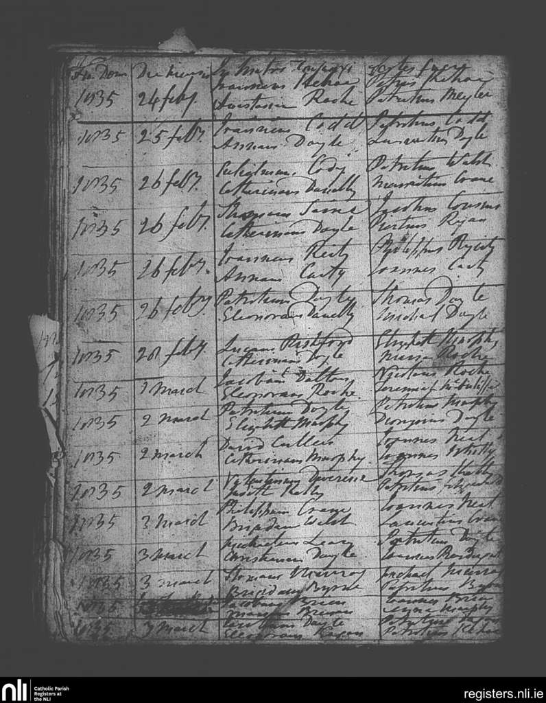Taghmon; County of Wexford; Diocese of Ferns. Marriages, Feb. 1835 to Mar. 1835