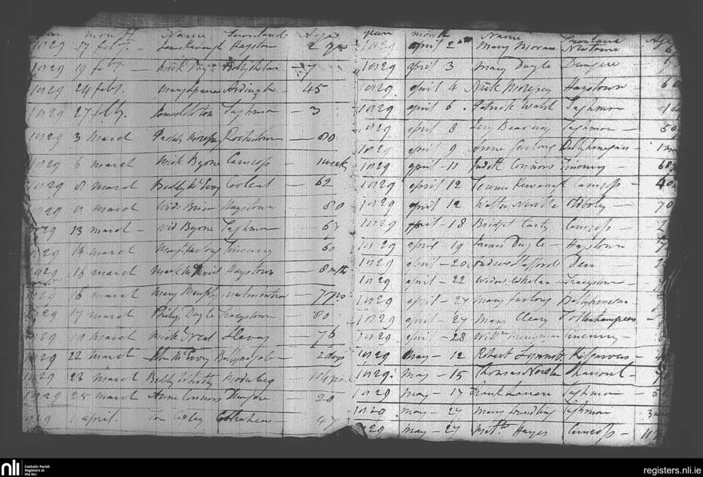 Taghmon; County of Wexford; Diocese of Ferns. Deaths, Feb. 1829 to May 1829