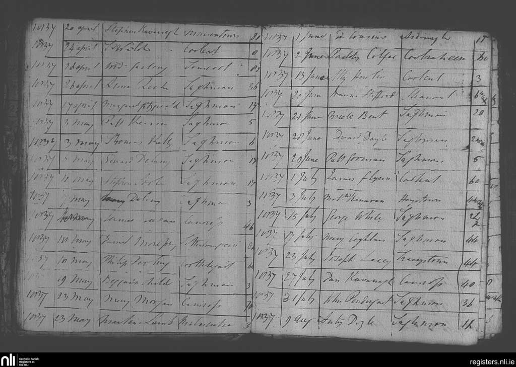 Taghmon; County of Wexford; Diocese of Ferns. Deaths, Apr. 1837 to July 1837