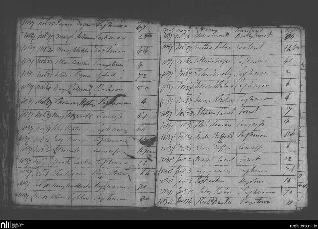 Taghmon; County of Wexford; Diocese of Ferns. Deaths, Nov. 1837 to Jan. 1838