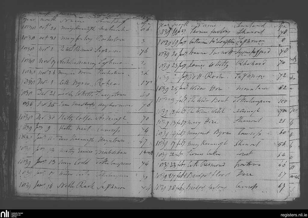 Taghmon; County of Wexford; Diocese of Ferns. Deaths, Oct. 1838 to Feb. 1839