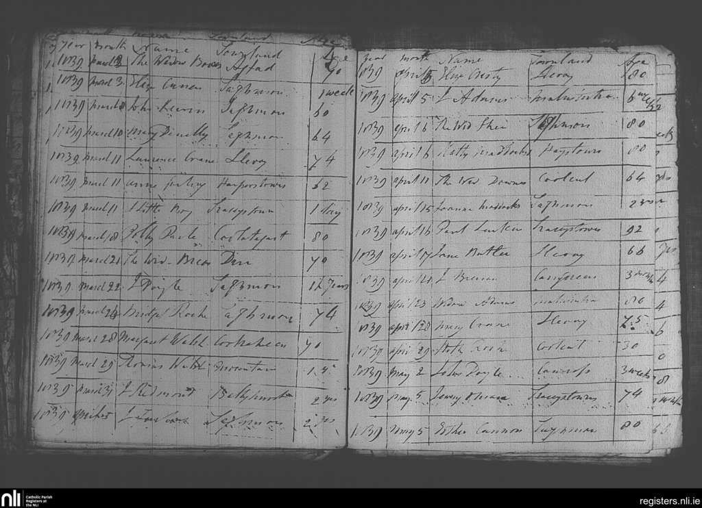 Taghmon; County of Wexford; Diocese of Ferns. Deaths, Mar. 1839 to May 1839