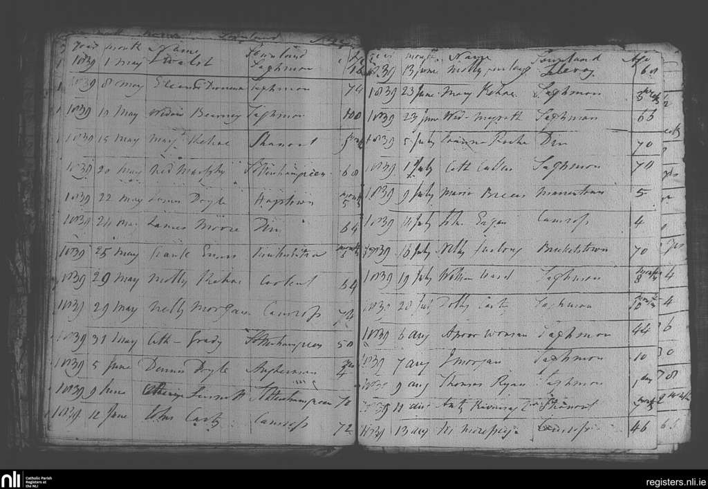 Taghmon; County of Wexford; Diocese of Ferns. Deaths, May 1839 to Aug. 1839