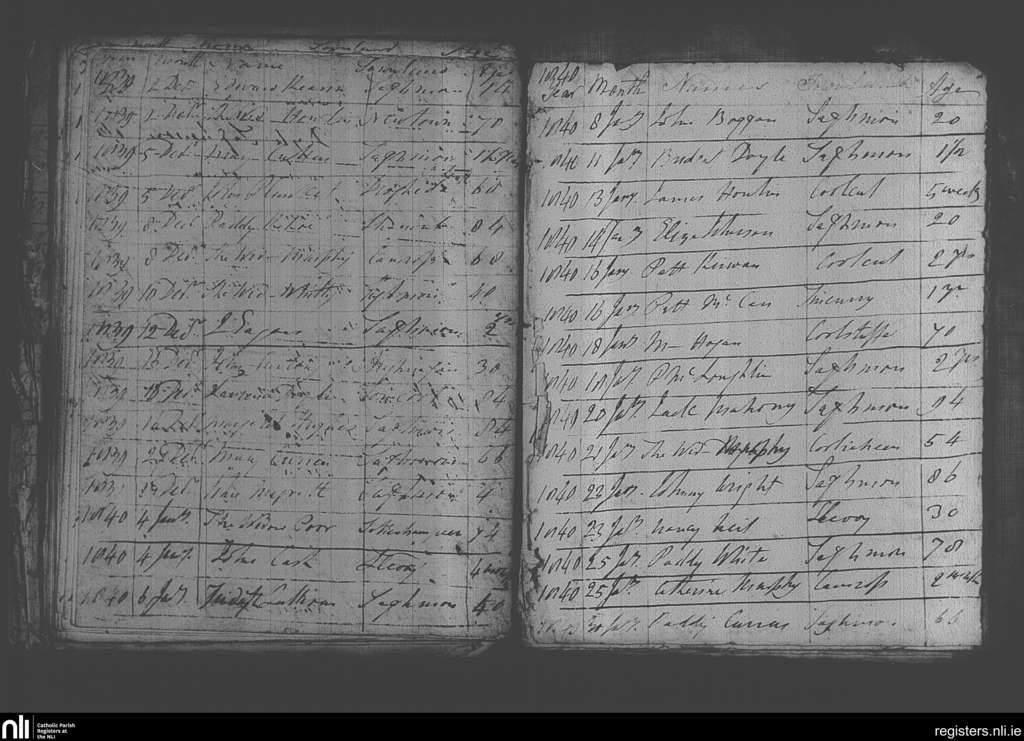 Taghmon; County of Wexford; Diocese of Ferns. Deaths, Dec. 1839 to Jan. 1840