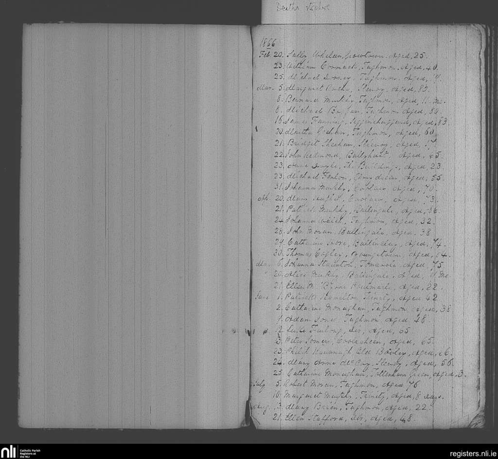 Taghmon; County of Wexford; Diocese of Ferns. Deaths, Feb. 1866 to Aug. 1866