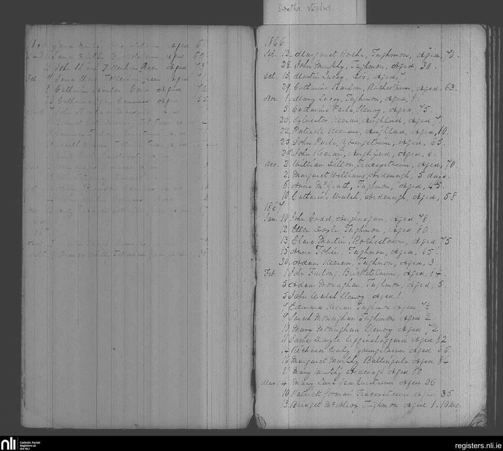Taghmon; County of Wexford; Diocese of Ferns. Deaths, Jan. 1866 to Mar. 1867