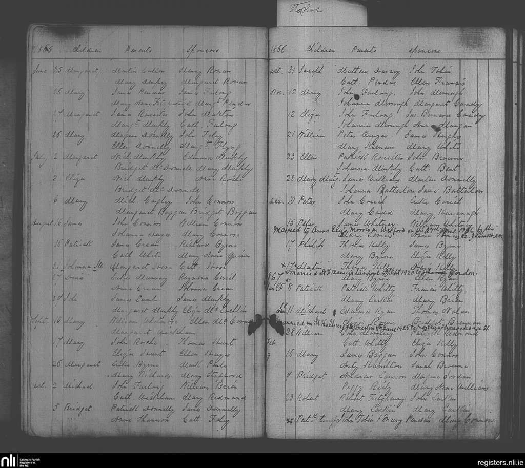 Taghmon; County of Wexford; Diocese of Ferns. Baptisms, Marriages, June 1866 to Apr. 1936