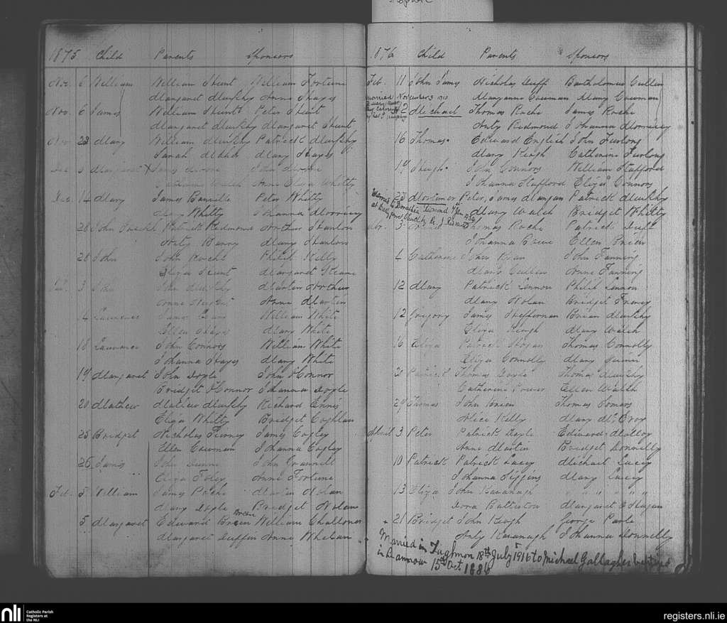 Taghmon; County of Wexford; Diocese of Ferns. Baptisms, Marriages, Nov. 1875 to Jan. 1930