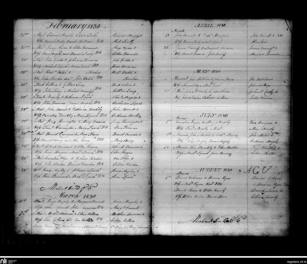Innishannon; County of Cork; Diocese of Cork and Ross. Marriages, Feb. 1830 to Aug. 1830