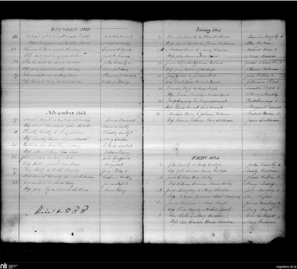 Innishannon; County of Cork; Diocese of Cork and Ross. Marriages, Oct. 1833 to Feb. 1834
