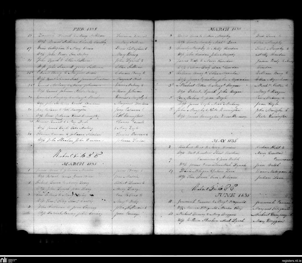Innishannon; County of Cork; Diocese of Cork and Ross. Marriages, Feb. 1835 to June 1835