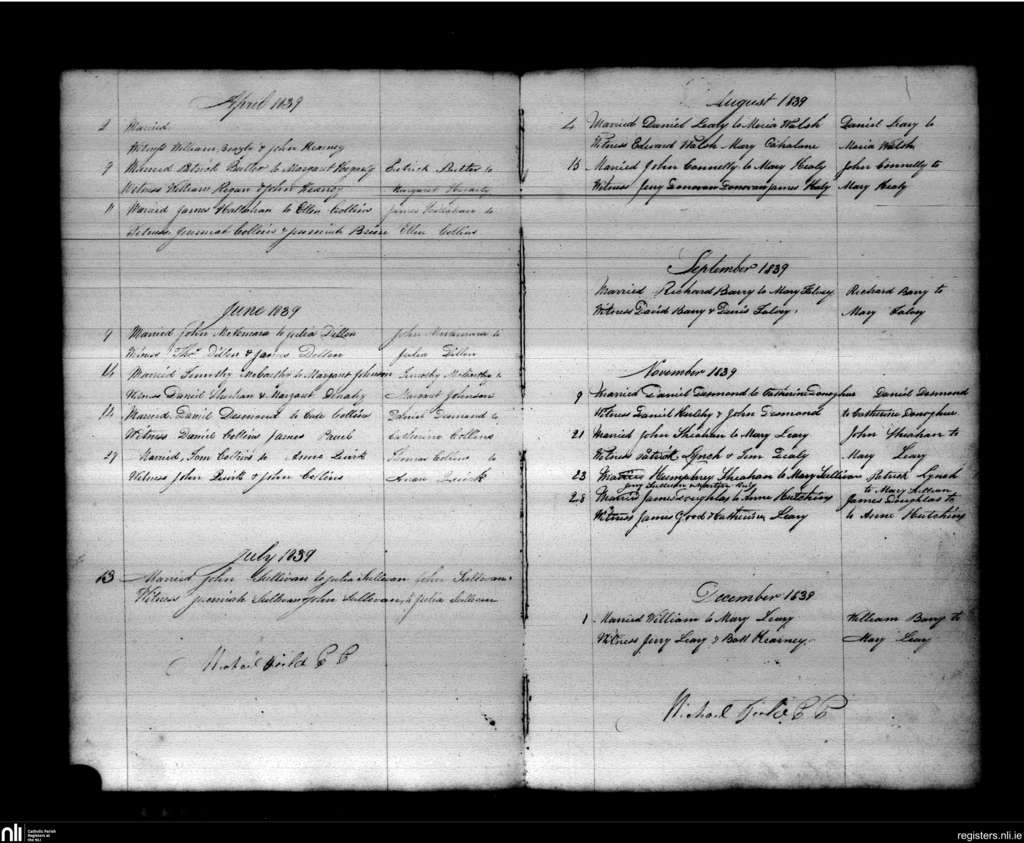 Innishannon; County of Cork; Diocese of Cork and Ross. Marriages, Apr. 1839 to Dec. 1839