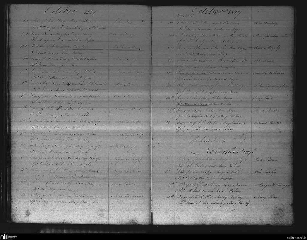 Innishannon; County of Cork; Diocese of Cork and Ross. Baptisms, Oct. 1827 to Nov. 1827