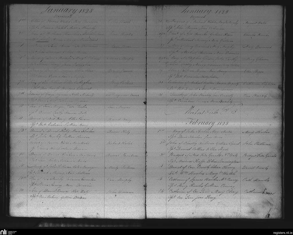 Innishannon; County of Cork; Diocese of Cork and Ross. Baptisms, Jan. 1828 to Feb. 1828