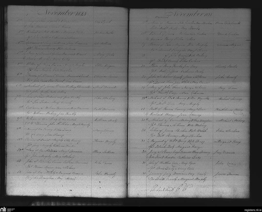 Innishannon; County of Cork; Diocese of Cork and Ross. Baptisms, Nov. 1828
