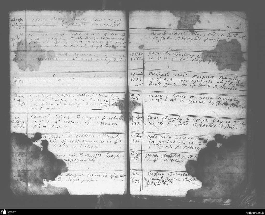 Wexford; County of Wexford; Diocese of Ferns. Dispensations, Feb. 1680 to Aug. 1683