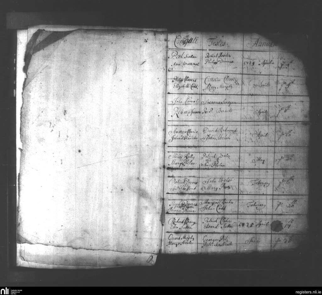 Wexford; County of Wexford; Diocese of Ferns. Marriages, Feb. 1724 to June 1725