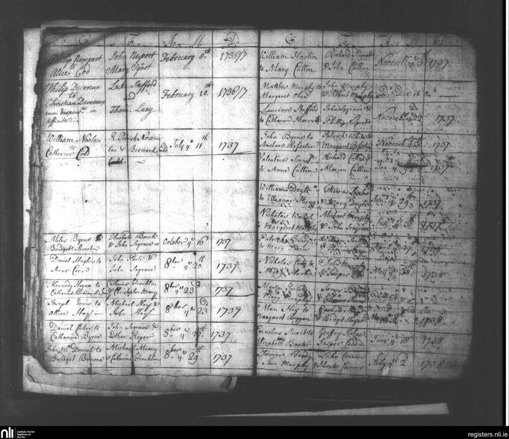 Wexford; County of Wexford; Diocese of Ferns. Marriages, Feb. 1736 to July 1738