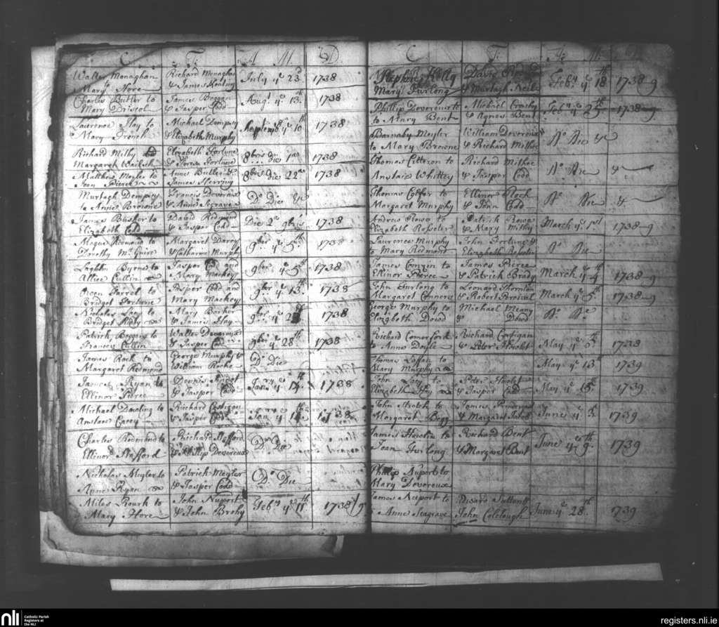 Wexford; County of Wexford; Diocese of Ferns. Marriages, July 1738 to June 1739