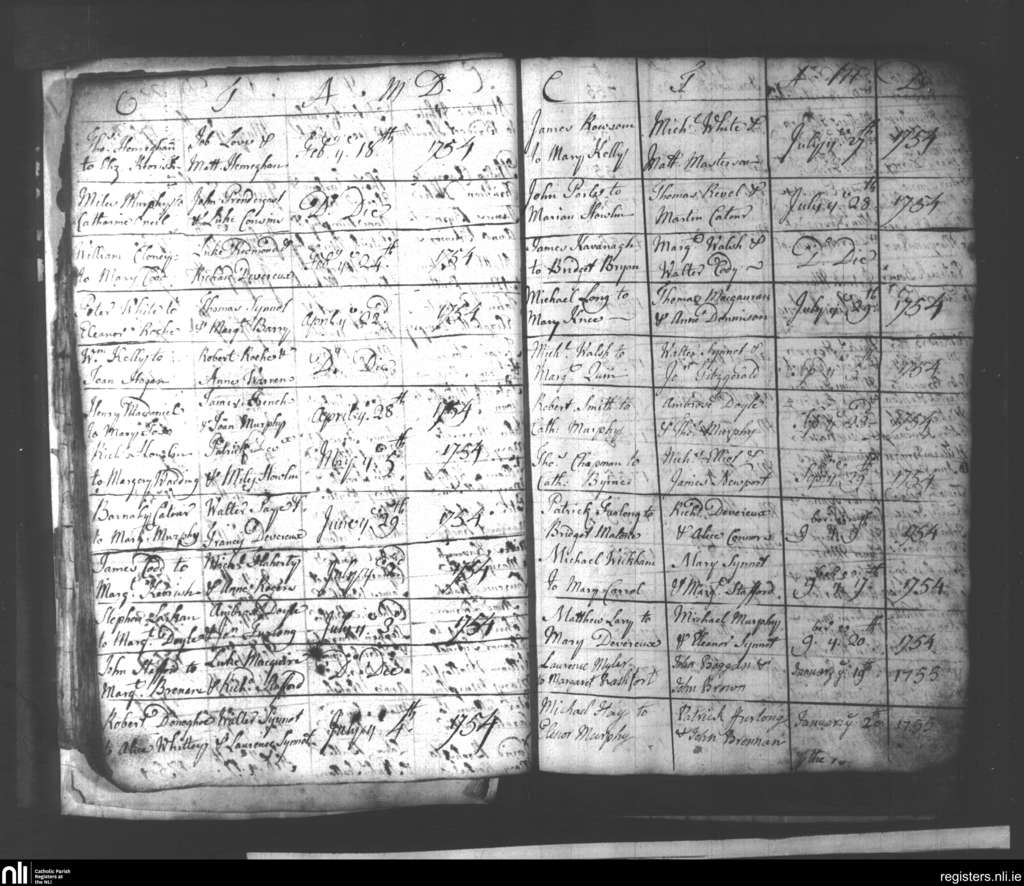 Wexford; County of Wexford; Diocese of Ferns. Marriages, Feb. 1754 to Jan. 1755