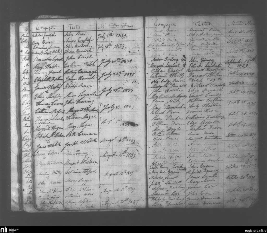 Wexford; County of Wexford; Diocese of Ferns. Marriages, July 1839 to Oct. 1839