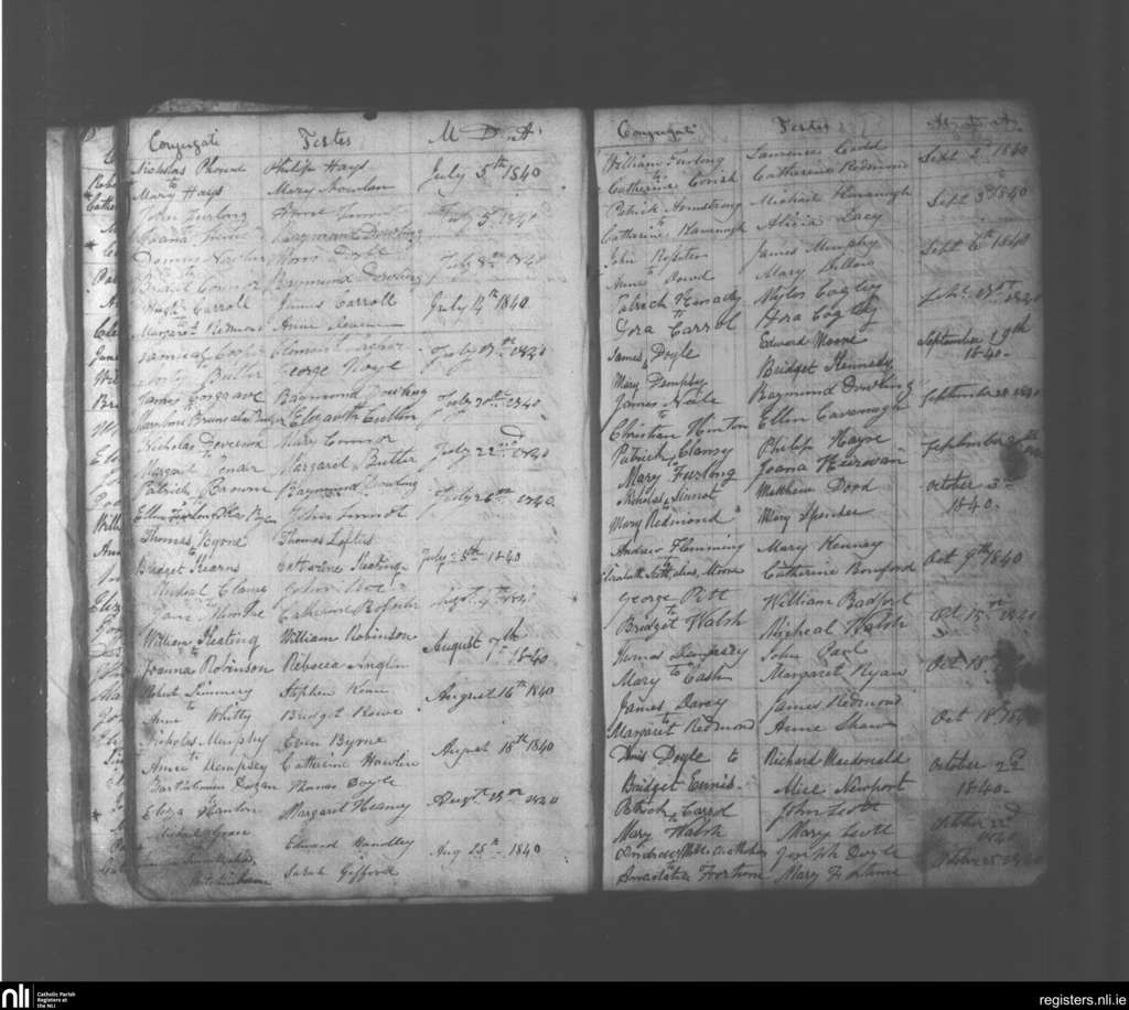 Wexford; County of Wexford; Diocese of Ferns. Marriages, July 1840 to Oct. 1840
