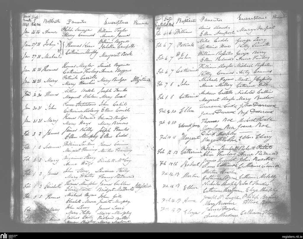 Wexford; County of Wexford; Diocese of Ferns. Baptisms, Jan. 1841 to Feb. 1841