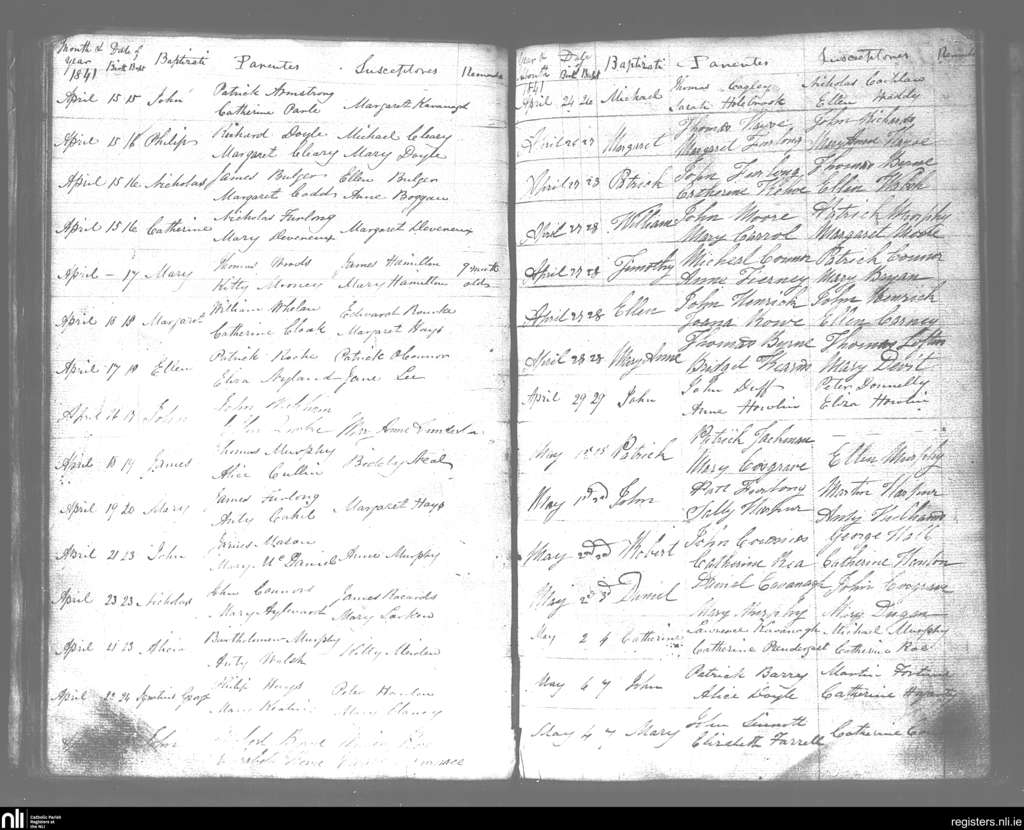 Wexford; County of Wexford; Diocese of Ferns. Baptisms, Apr. 1841 to May 1841