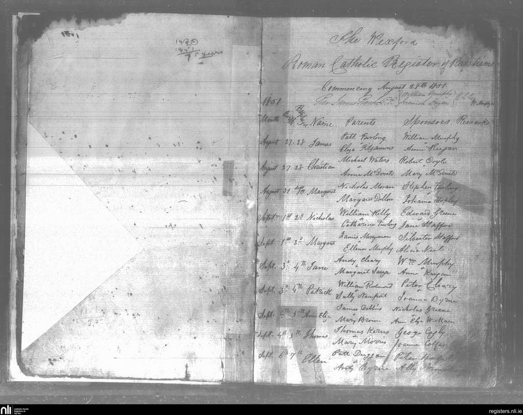 Wexford; County of Wexford; Diocese of Ferns. Baptisms, Aug. 1851 to Sep. 1851