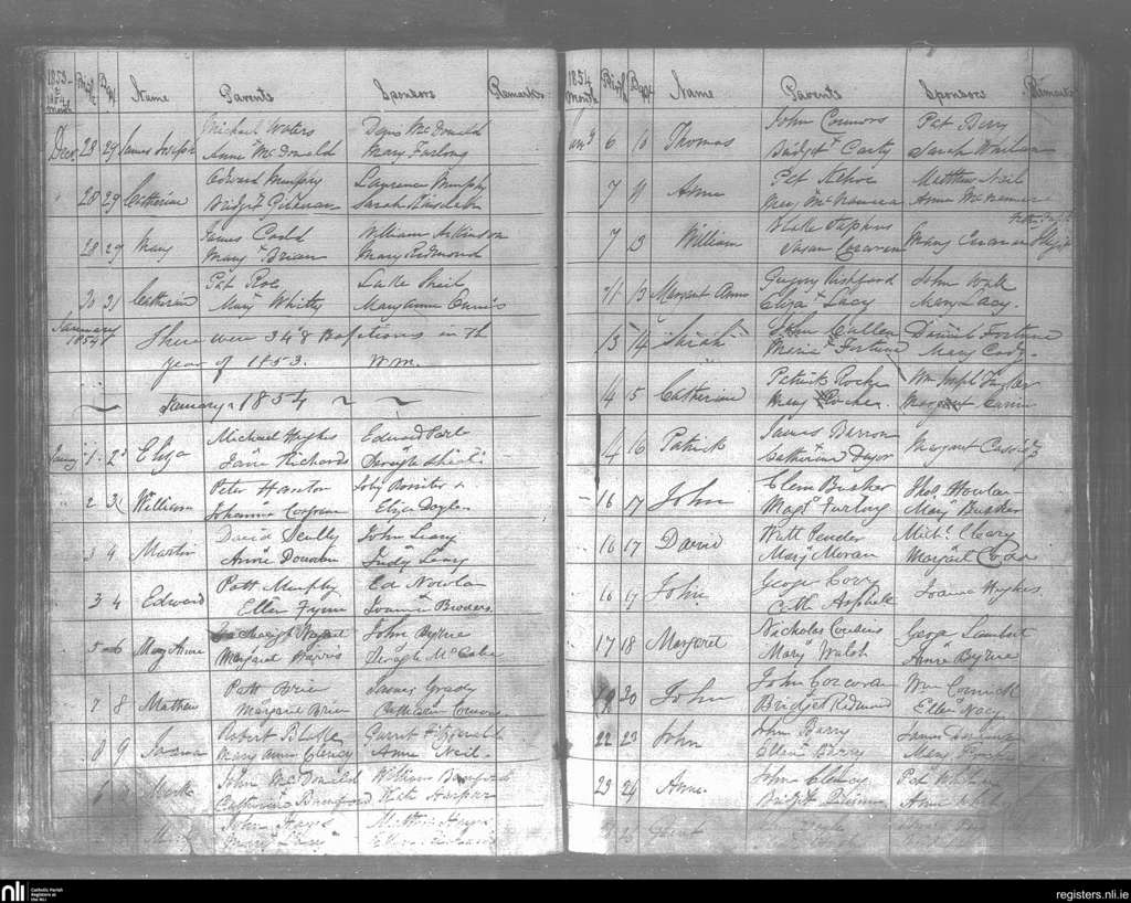 Wexford; County of Wexford; Diocese of Ferns. Baptisms, Dec. 1853 to Jan. 1854