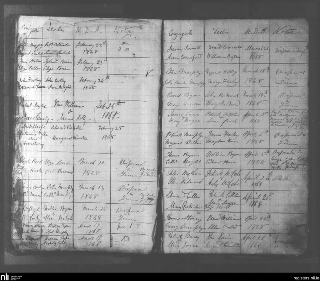 Wexford; County of Wexford; Diocese of Ferns. Marriages, Feb. 1868 to Apr. 1868