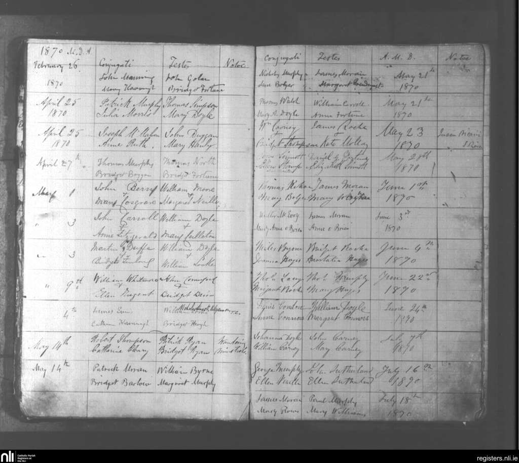 Wexford; County of Wexford; Diocese of Ferns. Marriages, Feb. 1870 to July 1870