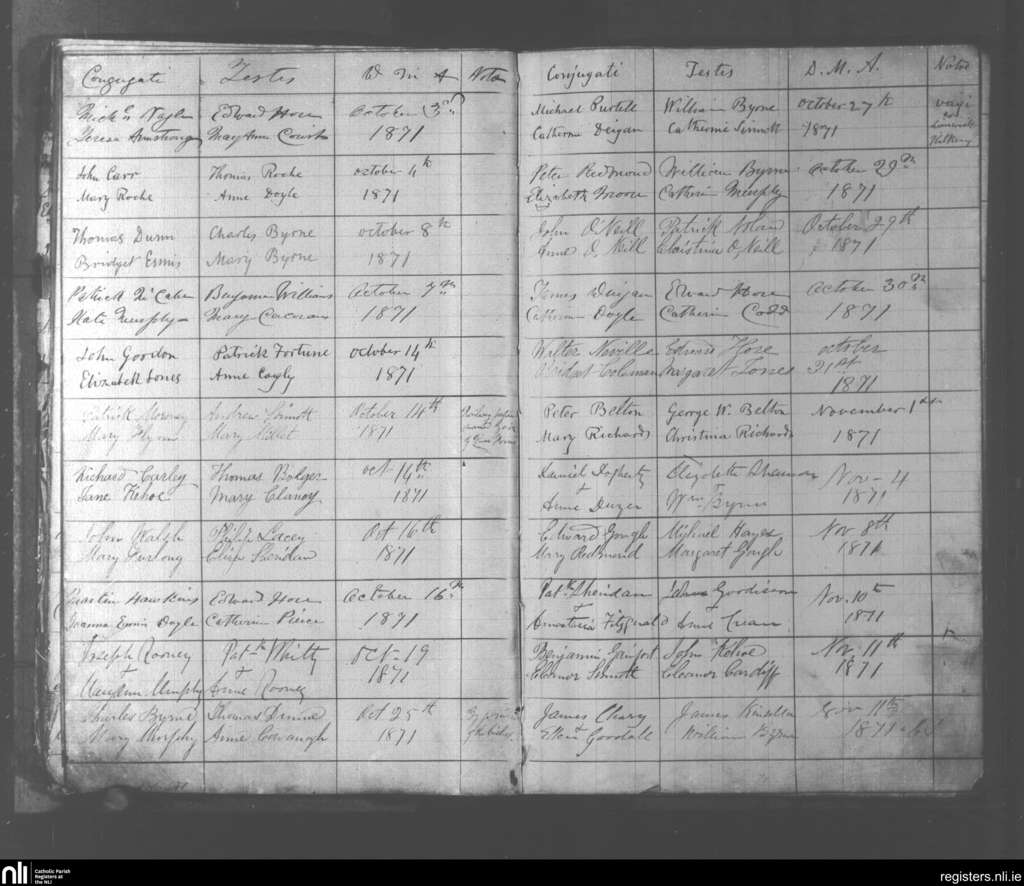 Wexford; County of Wexford; Diocese of Ferns. Marriages, Oct. 1871 to Nov. 1871
