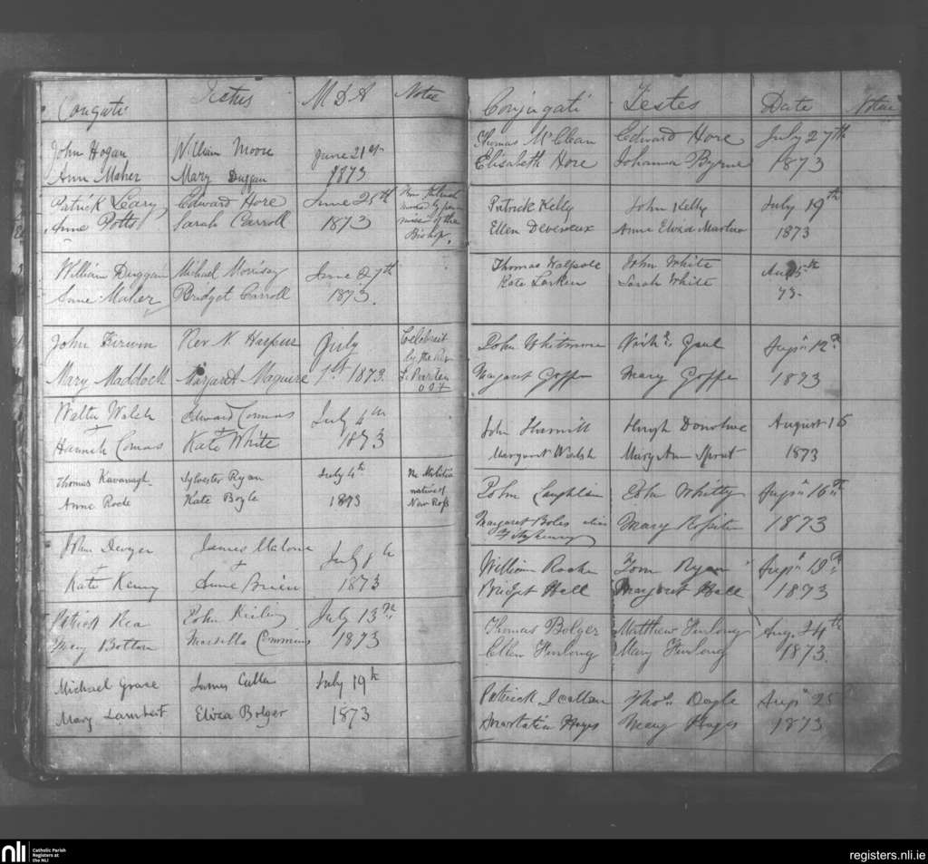 Wexford; County of Wexford; Diocese of Ferns. Marriages, June 1873 to Aug. 1873
