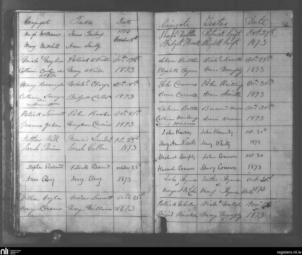 Wexford; County of Wexford; Diocese of Ferns. Marriages, Oct. 1873 to Nov. 1873