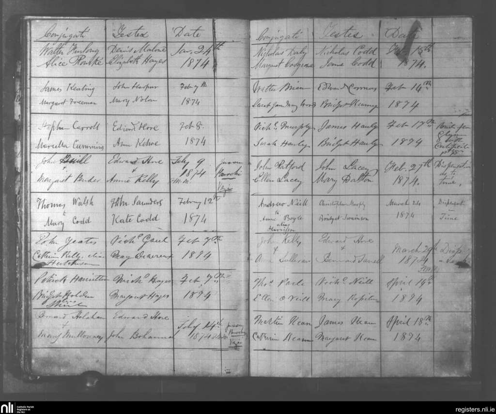 Wexford; County of Wexford; Diocese of Ferns. Marriages, Jan. 1874 to Apr. 1874