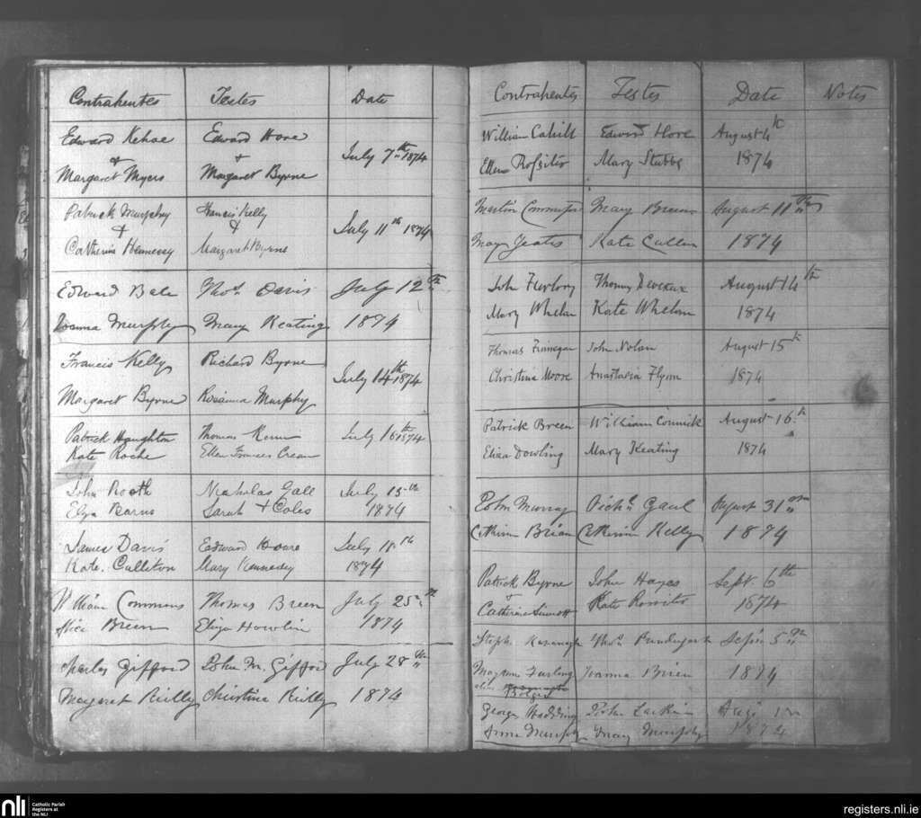 Wexford; County of Wexford; Diocese of Ferns. Marriages, July 1874 to Sep. 1874