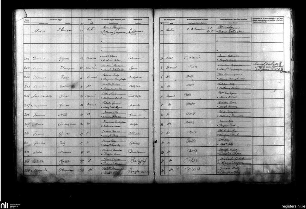 Ardrahan; County of Galway; Diocese of Galway. Baptisms, July 1871 to Dec. 1871
