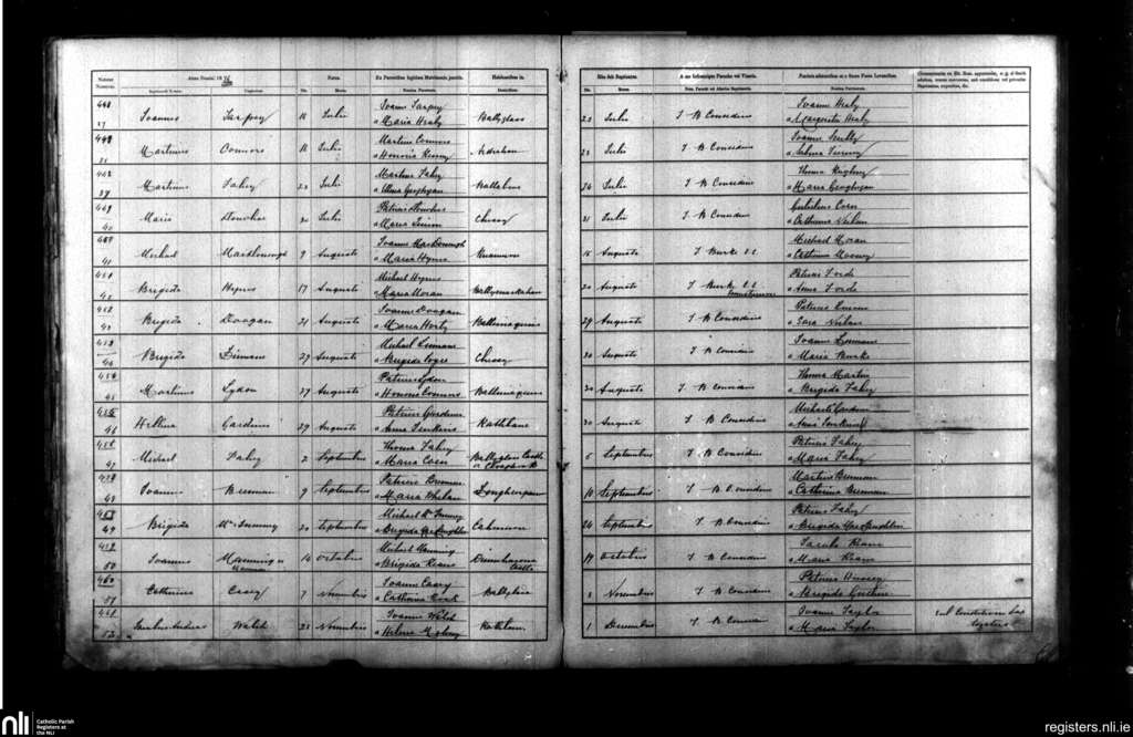 Ardrahan; County of Galway; Diocese of Galway. Baptisms, July 1876 to Dec. 1876