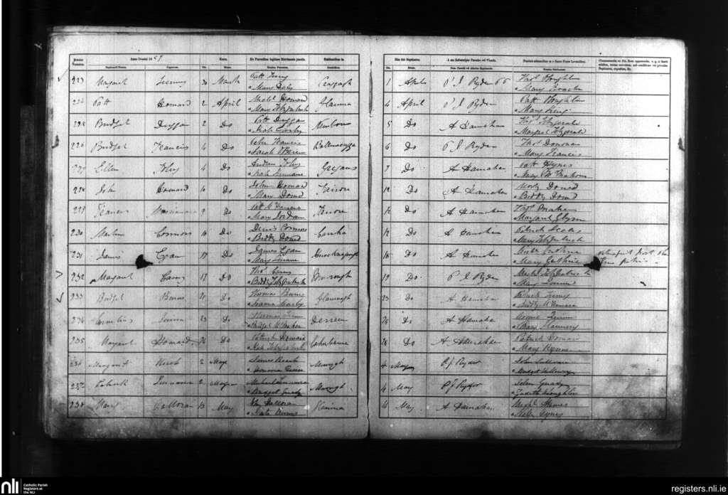 Ballyvaughan; County of Clare; Diocese of Galway. Baptisms, Apr. 1857 to May 1857