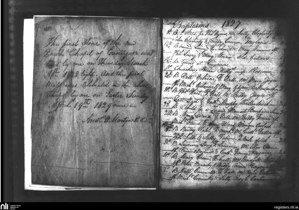 Castlegar; County of Galway; Diocese of Galway. Baptisms, Mar. 1827 to Apr. 1827