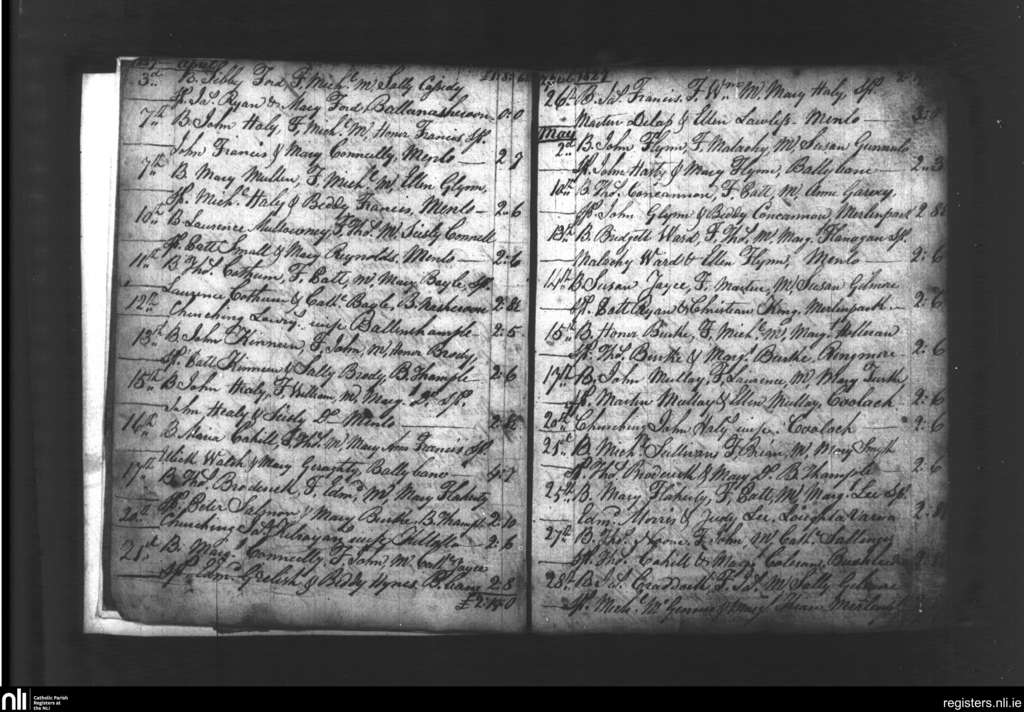 Castlegar; County of Galway; Diocese of Galway. Baptisms, Apr. 1827 to May 1827