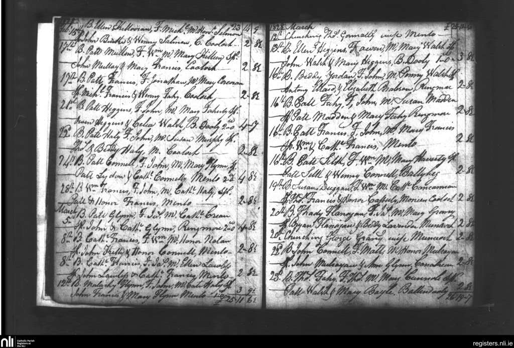 Castlegar; County of Galway; Diocese of Galway. Baptisms, Feb. 1828 to Mar. 1828