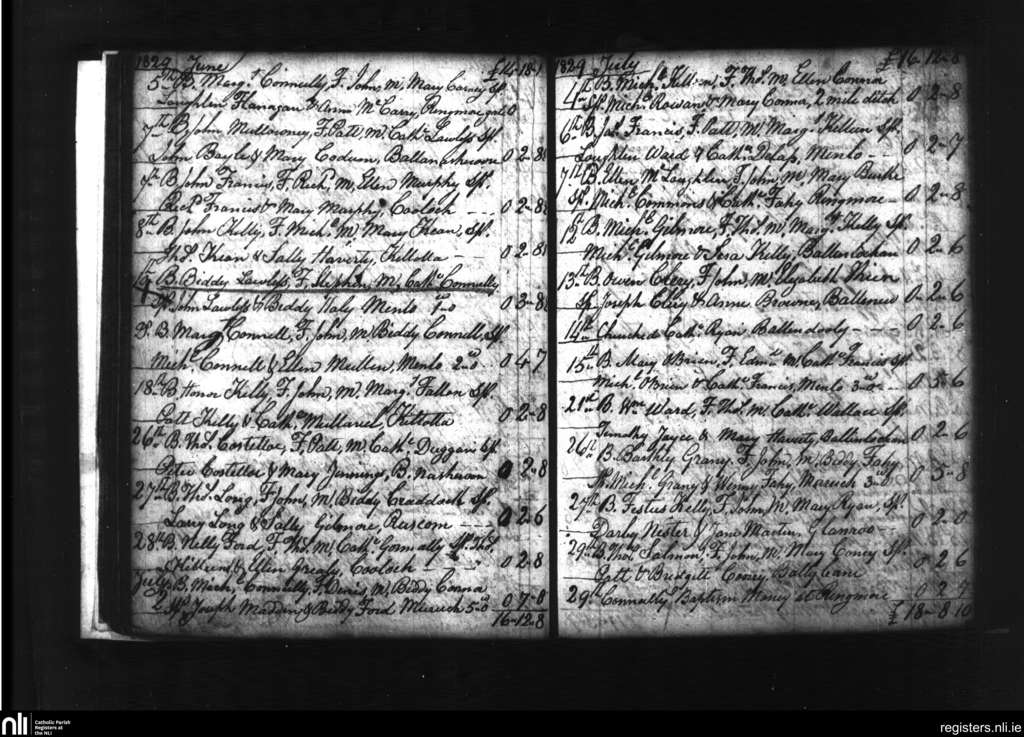 Castlegar; County of Galway; Diocese of Galway. Baptisms, June 1829 to July 1829