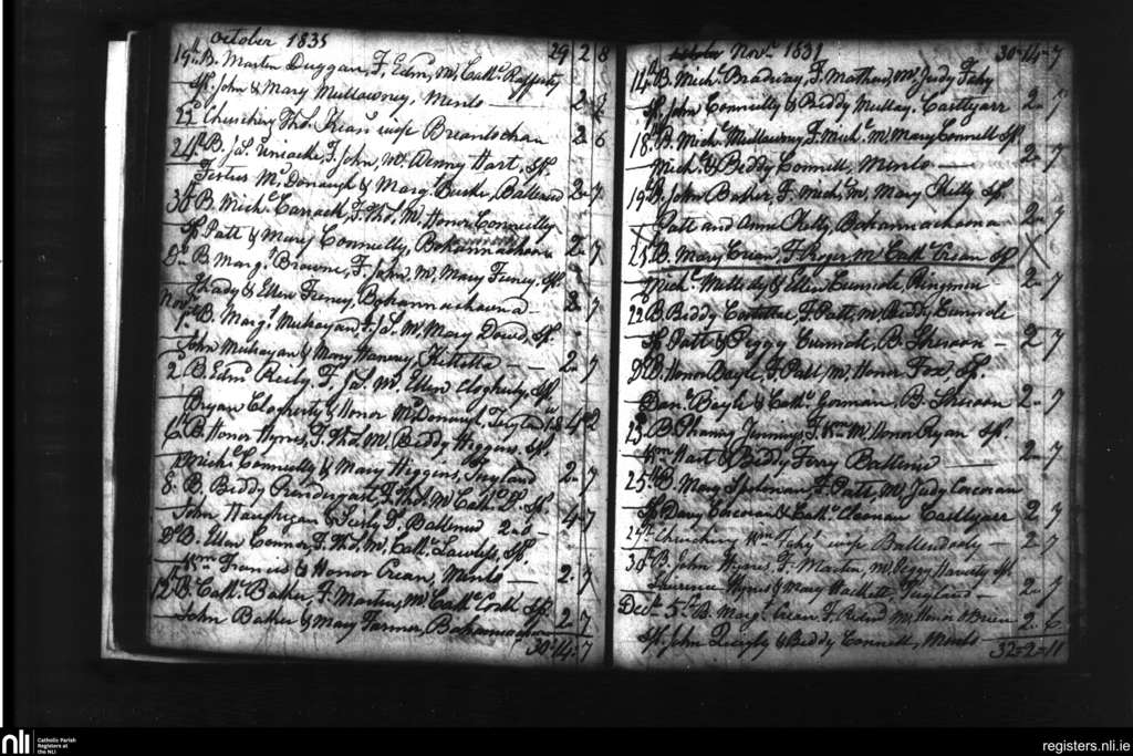 Castlegar; County of Galway; Diocese of Galway. Baptisms, Oct. 1831 to Dec. 1831