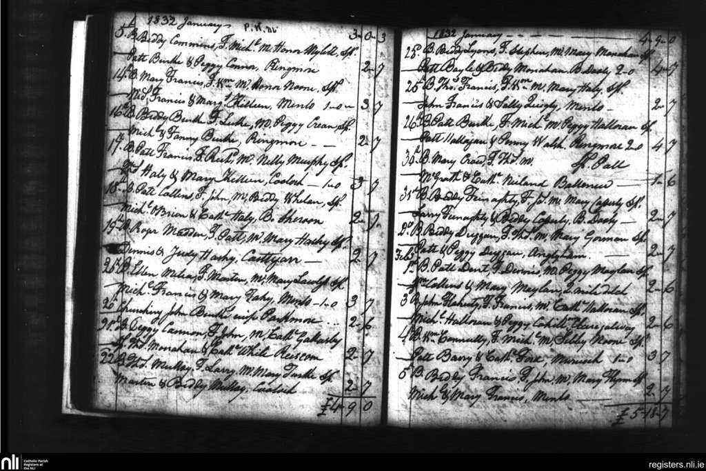 Castlegar; County of Galway; Diocese of Galway. Baptisms, Jan. 1832 to Feb. 1832