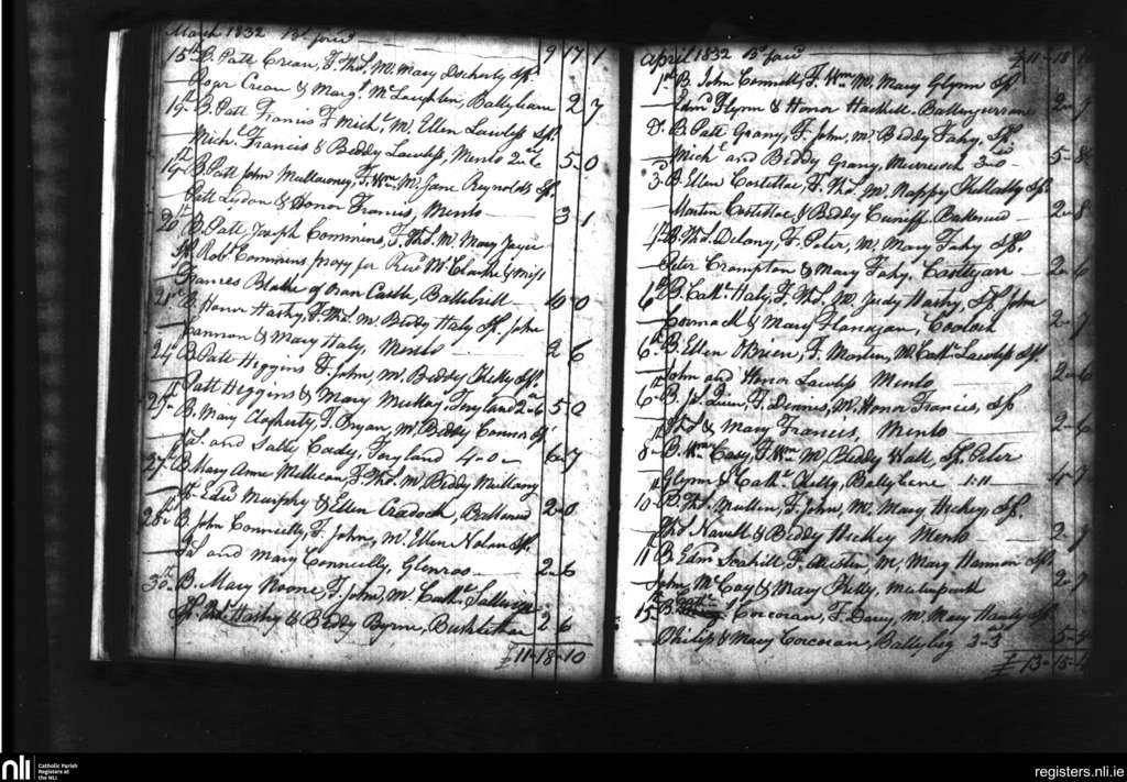 Castlegar; County of Galway; Diocese of Galway. Baptisms, Mar. 1832 to Apr. 1832